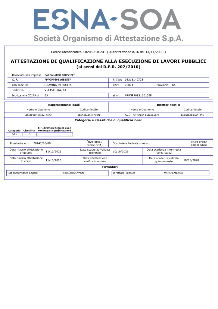 Geometra titolare dell’omonima impresa, figlio d’arte e maestro d’arte, la sua passione nasce con nell’impresa famigliare, dove già da adolescente seguiva il papà in tutti i suoi cantieri, in seguito conseguita la maturità tecnica e l’abilitazione, perfeziona la propria conoscenza collaborando come tecnico presso importanti aziende che operano in tutto il territorio nazionale, al fine di realizzare opere di notevole interesse storico e artistiche, quali Chiese, Musei, Teatri e antichi Casali, l’idea nasce per esprimere al massimo le capacità acquisite utilizzando maestranze locali, racchiudono ancora come una volta la capacità e la sensibilità della buona opera d’arte a garantire un servizio di altissima qualità per la clientela più esigente.